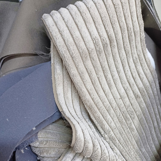 OUTLET wykroje z tkaniny Shaggy ecru, biały, brąz, czarny, róż, szary + sznurek bawełniany cały karton 9 kg